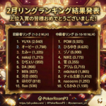2026年3月1日 / 最終更新日時 : 2026年3月1日 msadmin お知らせ 🎉2月リングランキング結果発表🎉 🎉2月リングランキング結果発表🎉 上位入賞の皆様、おめでとうございます!👑 今月も白熱したチップの奪い合いでした🔥 惜しくもランクインを逃した方…3月の戦いはすでに始まっています💪 ライバルに差をつけて、今月こそトップを […]